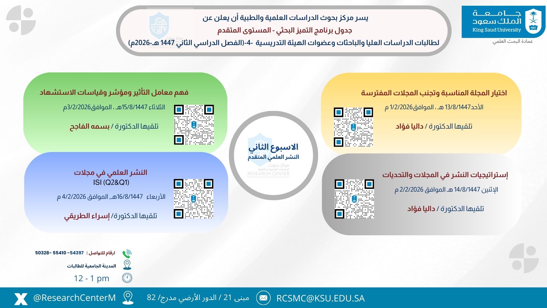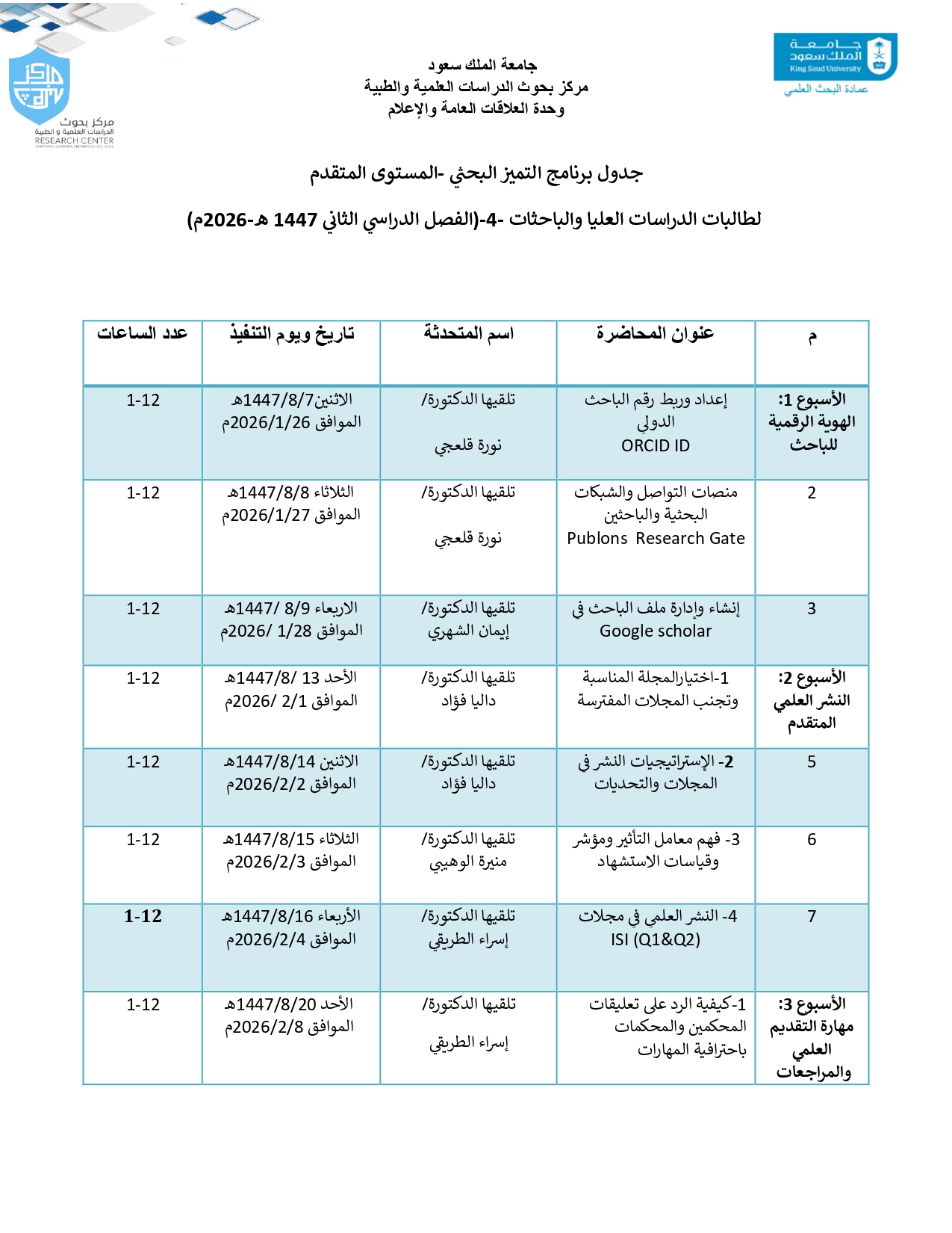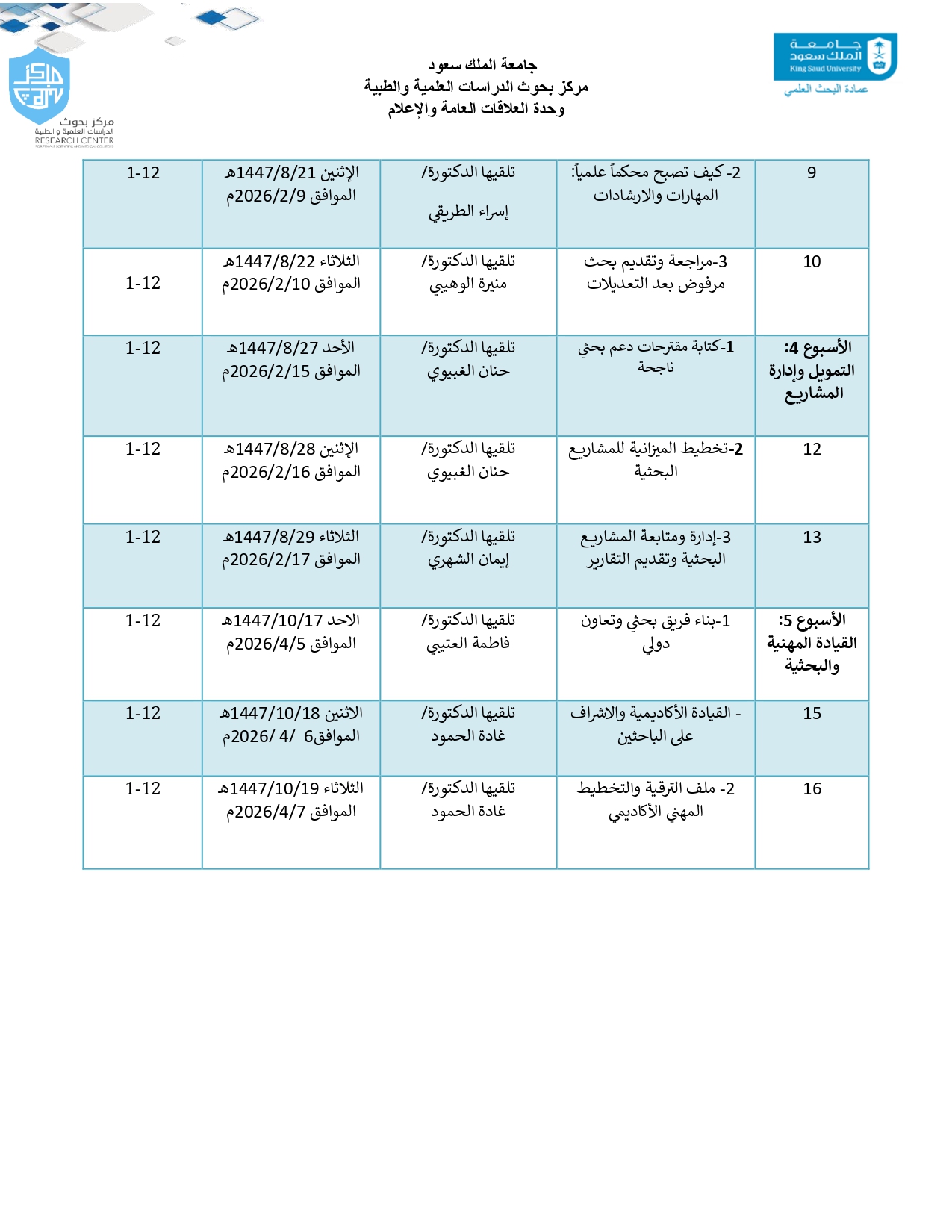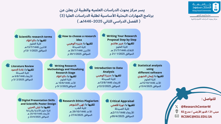 الانشطة والفعاليات اضافة صورة جدول المحاضرات التطويريه للباحثين 2.png (349.78 كيلوبايت) المرفقات سلسلة محاضرات تطويريه 2.pdf (196.1 كيلوبايت) النشره الدوريه لمركز بحوث الدراسات العلميه والطبيه.pdf (355.01 كيلوبايت)